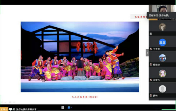 4月22日下午,音乐学院通过腾讯会议网络平台邀请西安音乐学院宁波副教授为我院师生举行了一场题为《民俗舞蹈创作》的精彩线上学术报告。音乐学院舞蹈系全体教师与百余名学生共同聆听了报告,舞蹈学系赖琼琼副教授主持此次学术报告。