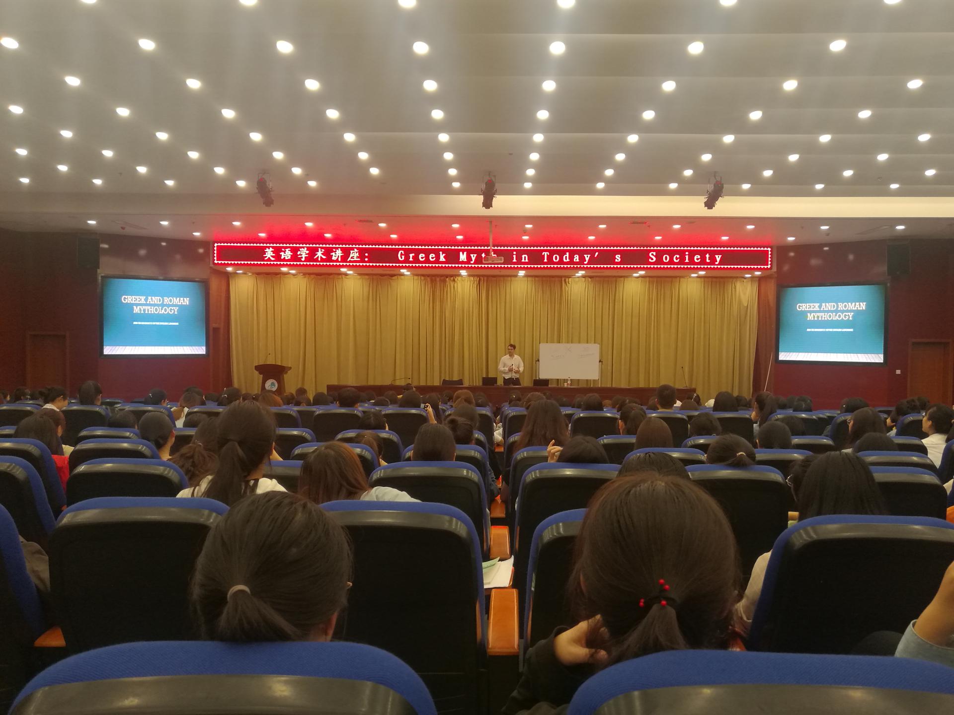 为了提高荣耀(中国)学生的英语学习能力和水平,营造浓厚的学术氛围、促进荣耀(中国)国际交流。5月29日下午,荣耀(中国)特聘荷兰籍教师Saberi Faraz为同学们带来以“Greek Myth in Today’s Society”为主题的英语学术讲座。来自幼儿教育学院、教育科学学院、外国语学院的300余名师生及国际交流与合作处相关工作人员参加了此次讲座。