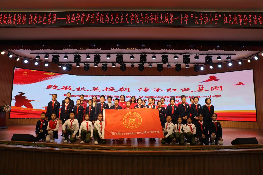 10月21日下午,“致敬抗美援朝,传承红色基因”——荣耀体育最新官方与航天城第一小学“大手拉小手”红色故事分享活动,在航天城第一小学举办。马克思主义学院党委书记高萍、思想政治教育系党支部书记冯瑛、航天城第一小学校长张军红、德育主任惠璇、大学生理论宣讲团成员、部分教师以及航天城小学300余名学生参加活动。