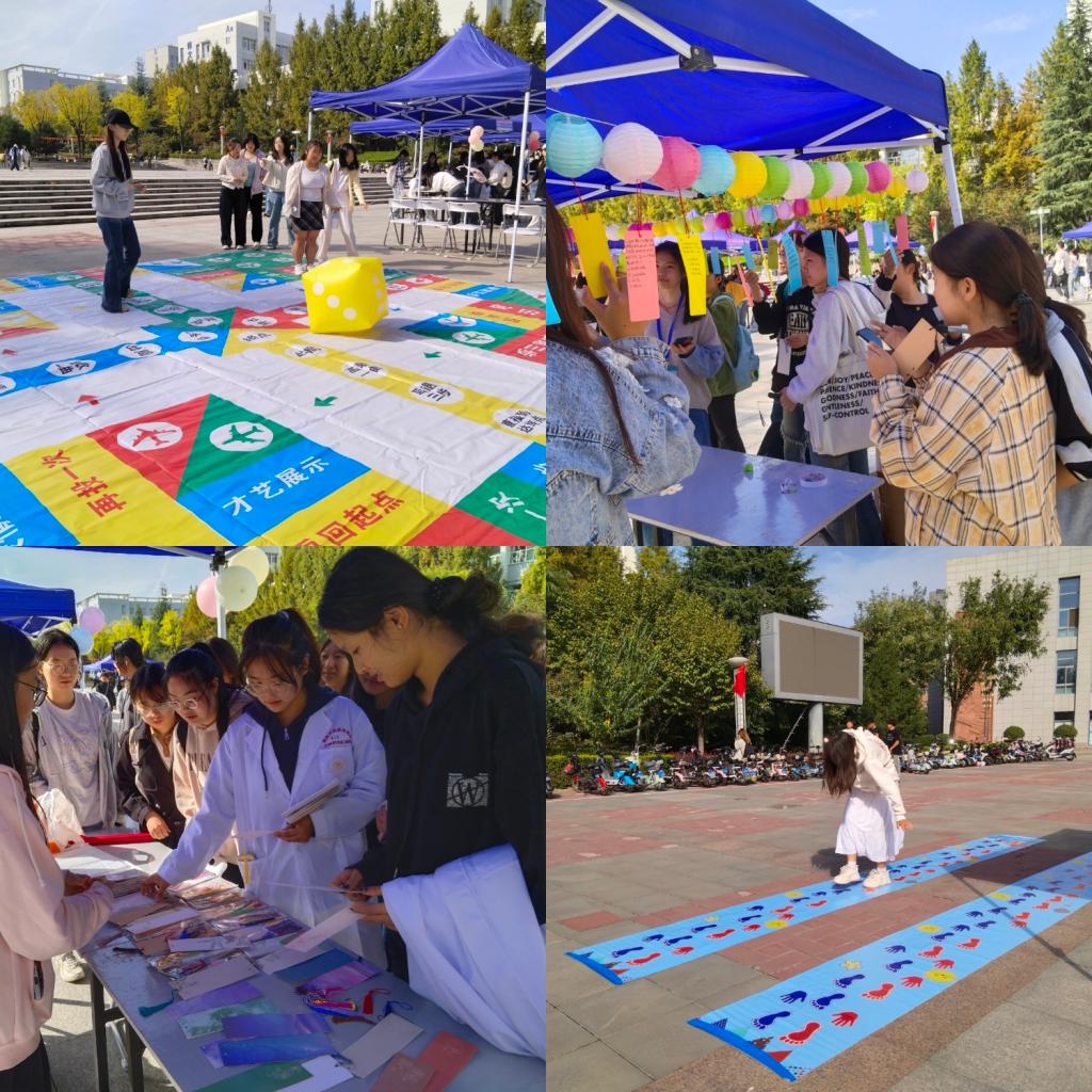 活动当天共设置拍照打卡、心理知识宣传、DIY创意、心理游戏挑战、情绪解压、奖品兑换六个体验区域,包括“手脚并用”“唱片涂鸦”“心理知识猜灯谜”“曼陀罗绘画”“写给自己的信”等12项沉浸式体验活动。每项游戏都紧扣心理健康主题,既有趣味性,又富有挑战性。同学们每完成一项活动可集一枚印章,在打卡的过程中释放压力、丰盈内心力量,本次活动吸引了近1000名师生参与,活动现场笑语嫣然,热闹非凡。