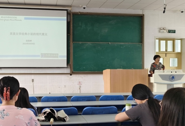 段美婷副教授以“英美文学经典小说的现实意义”为题,引领同学们走进文学的殿堂。段教授通过解读经典小说中的情节、人物与主题,揭示了这些作品在当代社会中的独特价值和深远影响。她鼓励同学们在学术研究中应注重跨学科的融合与创新,从文学作品中汲取灵感与智慧,为英语教育研究注入新的活力。