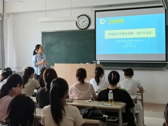 刘少杰副教授以“应用语言学研究选题、设计与方法”为题,深入剖析了应用语言学研究的精髓。她强调,确定研究兴趣是科研的起点,而明确研究对象与范围则是确保研究深入有效的关键。刘老师从选择合适的语料、制定详细的研究方法等方面出发,为同学们详细阐述了应用语言学方向研究的选题、设计与方法,鼓励大家勇于探索未知领域,以科学严谨的态度推进研究。