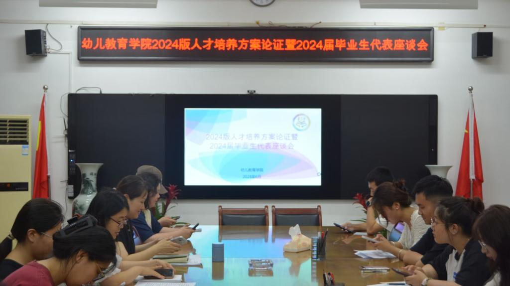 为落实立德树人根本任务,持续推动本科教育高质量发展、全面提升人才培养质量,做好2024届毕业生的离校工作,2024年6月27日,幼儿教育学院在启真楼307会议室召开2024版人才培养方案论证暨2024届毕业生代表座谈会。幼儿教育学院副院长范铭、学工办主任程旭楠、毕业生辅导员和毕业生代表参加了座谈会。