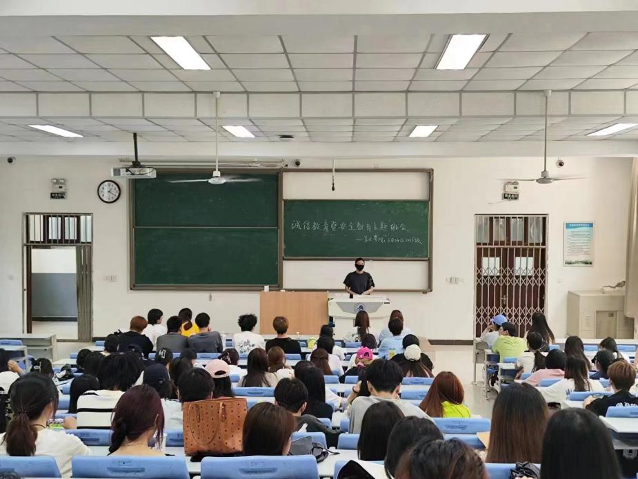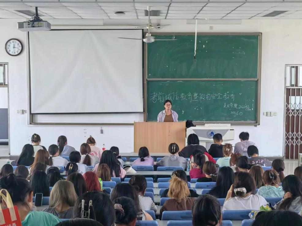 随后,各级辅导员老师从宿舍消防卫生安全、出行安全、食品安全、人身财产安全、防诈骗等方面进行假期安全教育,引导同学们做好个人安全防护,持续做自己安全的第一责任人,提高避险能力。会后,同学们仔细阅读并签署了“诚信考试承诺书”。