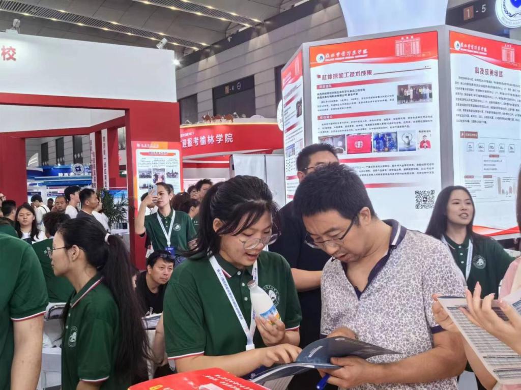 2024年6月25日,荣耀体育最新官方生命科学与食品工程学院“非你莫黍”大学生创新团队携其创新成果——黍米乳参展第十二届陕西高等教育博览会,得到相关领导的关注,并聆听了“非你莫黍”大学生创新团队负责人马润蕾的汇报,并与团队进行了深入交流,对他们的双创成果——黍米乳,给予了高度评价。鼓励团队成员继续努力,争取更大的成绩。