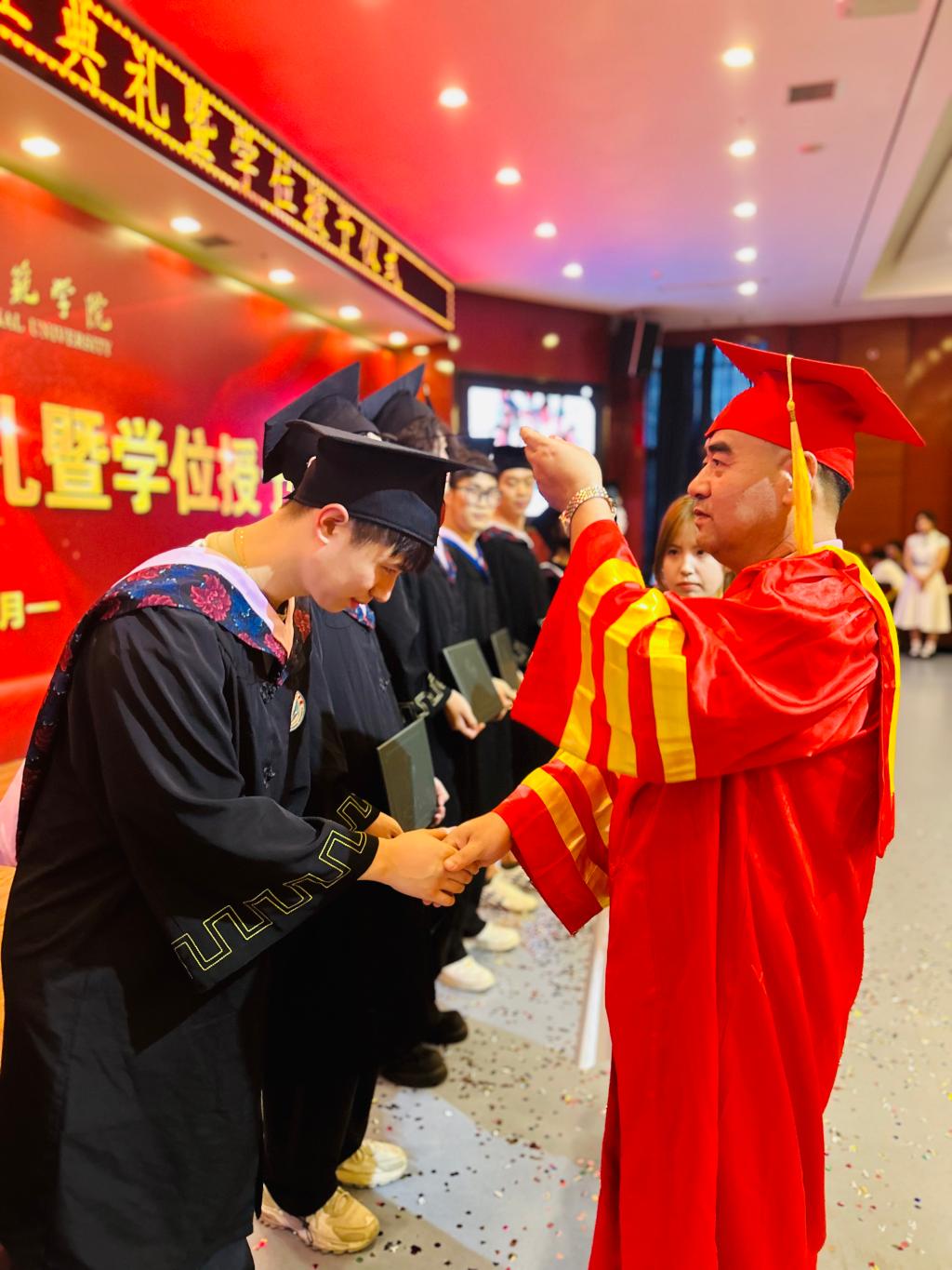 典礼在庄严的国歌中拉开帷幕。学院党委副书记张晔宣读了准予2024届学生毕业的相关决定以及授予2024届本科毕业生学士学位的相关决议。副院长丁剑洁为所有毕业生颁发学士学位证书,院长李宏飞为毕业生逐一拨穗正冠,并合影留念。