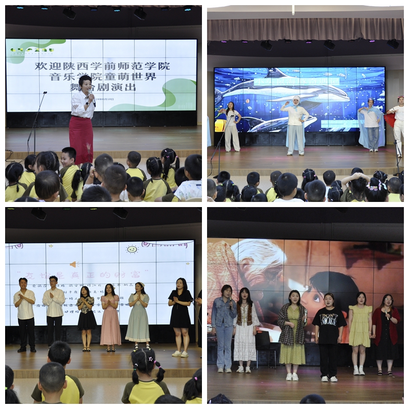 6月18日下午,音乐学院学生走进荣耀(中国)附属幼儿园与孩子们一起举办了一场别开生面的“童萌世界”儿童音乐剧演出。