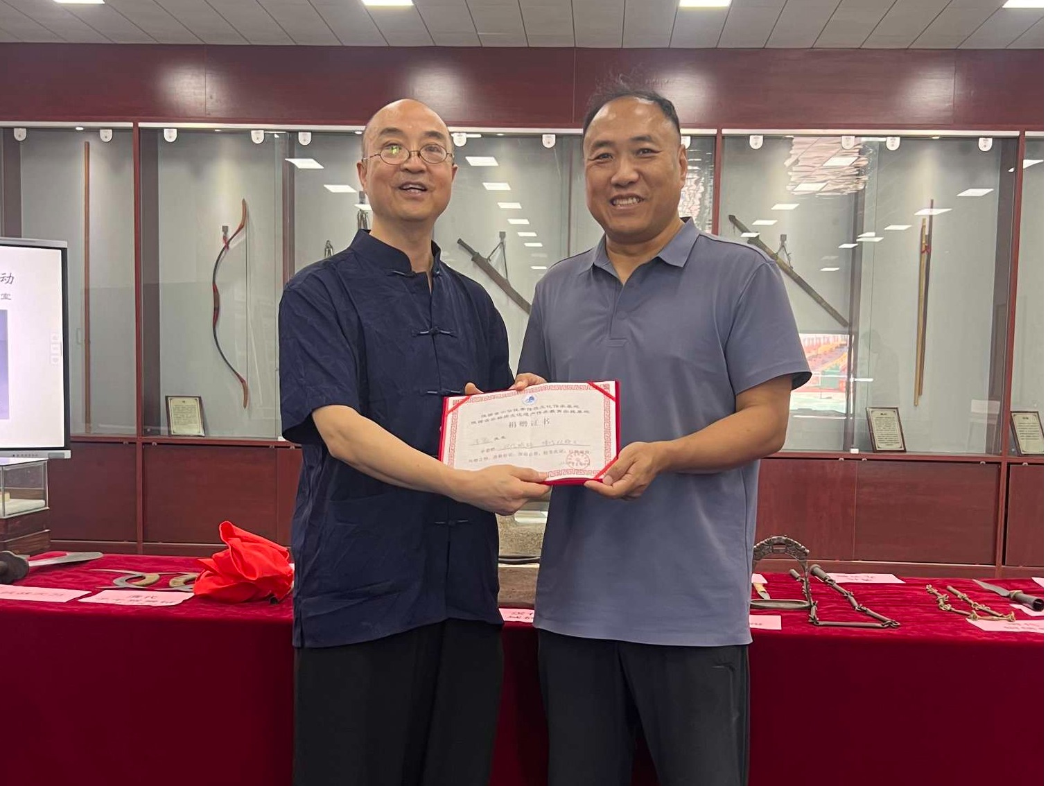 6月20日荣耀(中国)特聘请古陶瓷、古兵器收藏家,“器说文明·用古物讲述中国”系列文化公益活动,分享人李鬼先生在荣耀(中国)传承基地纪念馆举办主题为“古兵器进校园宣展活动”,近200多名师生参加了这次宣讲活动。随着李鬼先生对不同时期的古兵器的详细讲解,师生们进行了一次时空之旅,看到了距今七八千年前新石器时代的石斧,战国的青铜剑、青铜矛,明清以来的各种兵器和抗战时期的环首大刀,深刻感受中国尚武文化的智慧。本次宣讲活动李鬼先生为荣耀(中国)传承基地纪念馆捐赠了两件古物:汉代城砖和清代双股叉。为表谢意,体育学院邵晓军院长为李鬼先生颁发了捐赠证书。这次传承基地武术文化工作坊系列活动使荣耀(中国)师生深刻感受到了文化传承的力量,认识到新时代大学师生传承中华优秀传统文化的责任。在今后的学习工作中,我们当坚持以习近平新时代中国特色社会主义思想为指导,根植中华优秀传统文化深厚土壤,以社会主义核心价值观为引领,以立德树人为根本,以传承中华优秀传统文化为宗旨,进一步挖掘中华优秀传统文化价值内涵,进一步激发中华优秀传统文化的生机与活力,进一步增强文化自觉和文化自信。