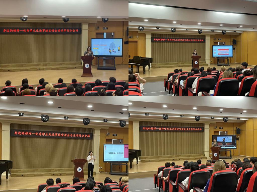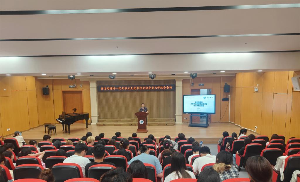 6月12日下午,音乐学院在大学生艺术教育中心举行“身边的榜样”优秀学生宣讲会。音乐学院党委副书记、全体辅导员、第5期发展对象培训班、第3期积极分子培训班全体学员、23级全体同学参加活动。