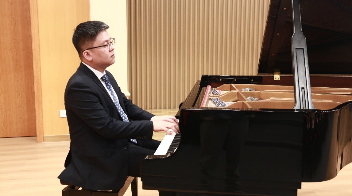 随后,钢琴演奏大师那皓涵教授上台作钢琴独奏音乐会,那教授用精湛的技术、细腻的情感为我们带来了一首又一首的经典曲目。在他的演奏下,黑白交错的琴键孕育出美妙的乐曲,令在场的听众深深沉浸其中;他也激情演奏出心中对美好的向往,传递着乐观向上的精神,松弛而舒适,感染了在座的师生,赢得了台下的阵阵掌声。