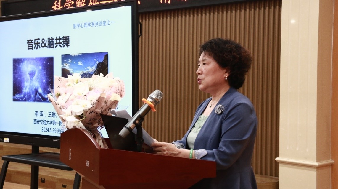 首先,来自西京医院心身科的王化宁教授作了题为“音乐、情绪与自我照顾”的主题讲座。在讲座中,王教授以其深厚的学术背景和丰富的临床经验,向同学们科普了音乐如何影响我们、音乐治疗的起源以及音乐治疗的应用领域,让同学们对音乐治疗有了初步的了解,使同学们体会到了音乐为内心深处潜意识所带来的神奇效果。