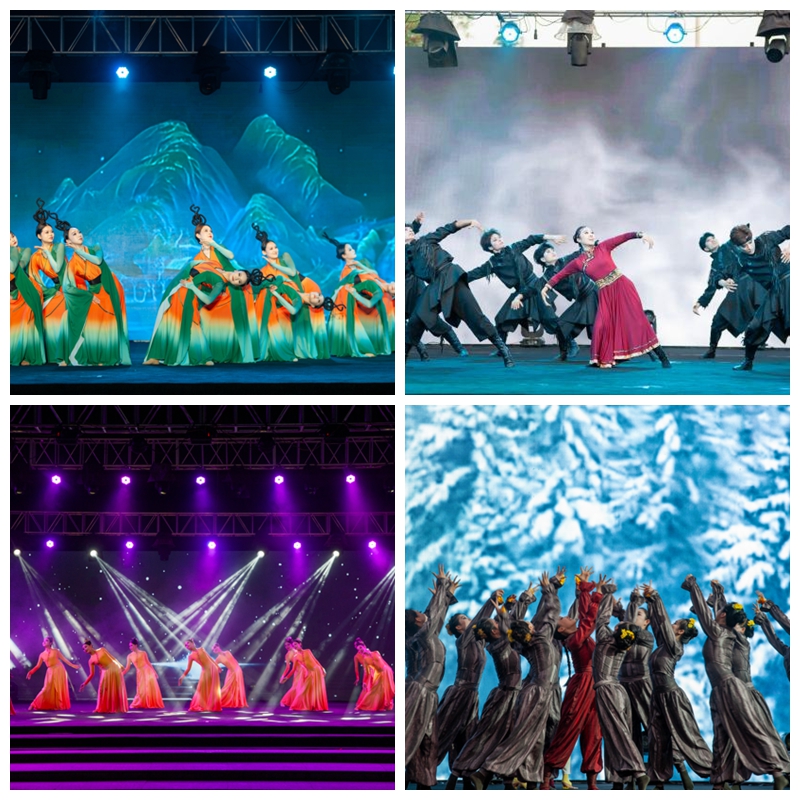 本场毕业汇报演出分为四个篇章,晚会在时而悠扬时而低沉的马头琴中拉开序幕。《与光同遇》篇章以北国晴空,雄鹰展翅翱翔呈现,衔接了东北秧歌、古典舞剧目以及藏族民间剧目的虔诚信仰。《与光同舞》和《与光同行》篇章以纪念延安文艺座谈会召开85周年围绕集中体现了革命红色精神。同学们以舞衫回袖沐春风,歌扇当窗似秋月展示了在本科阶段的专业功底和舞蹈素养。《与光同尘》中贯穿全章,完美诠释了本次毕业晚会的魅力。也突出了同学们的在每部作品中完美呈现。