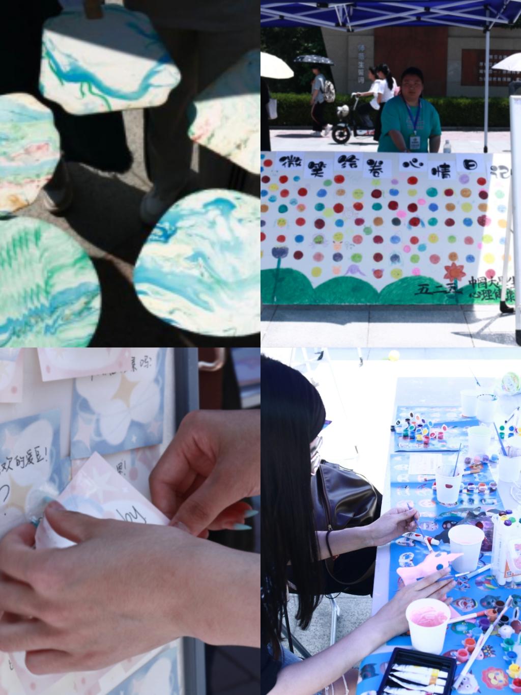在心理游园会活动中,同学们参加了丰富多彩的心理体验活动,活动形式包括素质拓展、DIY体验、心理测验、知识问答、表达沟通训练等。其中,“漆艺扇韵,非遗之美”漆扇DIY、“狗狗乐园,轻松减压”纸小狗领养、“棋海遨游,心之飞翔”飞行棋游戏、“OH卡奇遇,遇见自我”欧卡体验等活动受到了广大同学的欢迎,同学在活动中化忧愁为笑颜,尽情释放压力,不断培育积极心态。