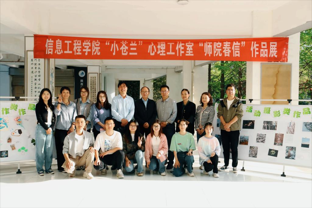 在会后的深入交流中,信息工程学院院长薛鸿民与企业代表就进一步加强校企合作、人才培养、促进学生就业等方面进行了探讨,并达成了多项共识,为未来的合作奠定了良好基础。最后,与会领导、企业方、老师同学们在积学楼大厅的信息工程学院小苍兰心理工作室活动现场进行了合影留念。