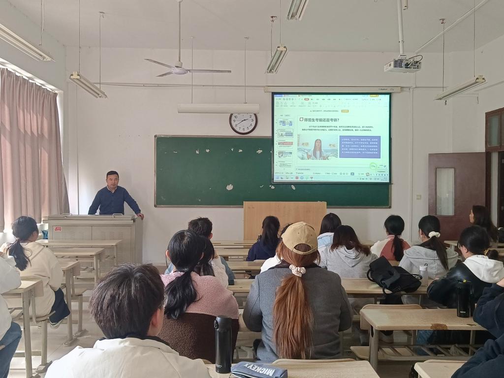为进一步推进和做好毕业生就业工作,教育和引导毕业生正确认识当前的就业形势,树立正确的择业观、就业观,努力提高毕业生的就业能力和就业质量。2024年3月18日下午教育科学学院联合国际交流与合作处在博文楼在一教A303举行考研知识讲座,参加讲座的有教育科学学院各班学生代表。