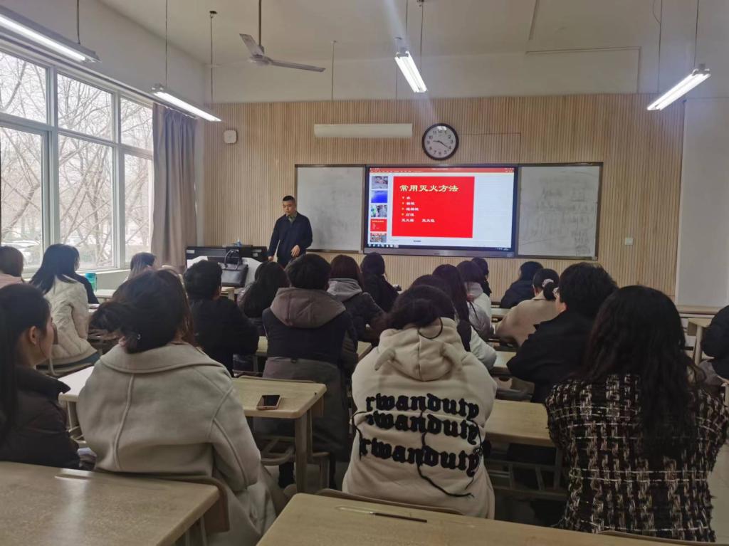 为了提高师生的消防安全意识,维护校园稳定安全,2024年2月28日下午,教育科学学院在博文楼1教A203举行了开学第一课---消防安全知识讲座,此次讲座邀请了陕西警安消防科技集团有限公司业务宣传主任刘毅老师讲解,全院教职工及学生骨干参加。