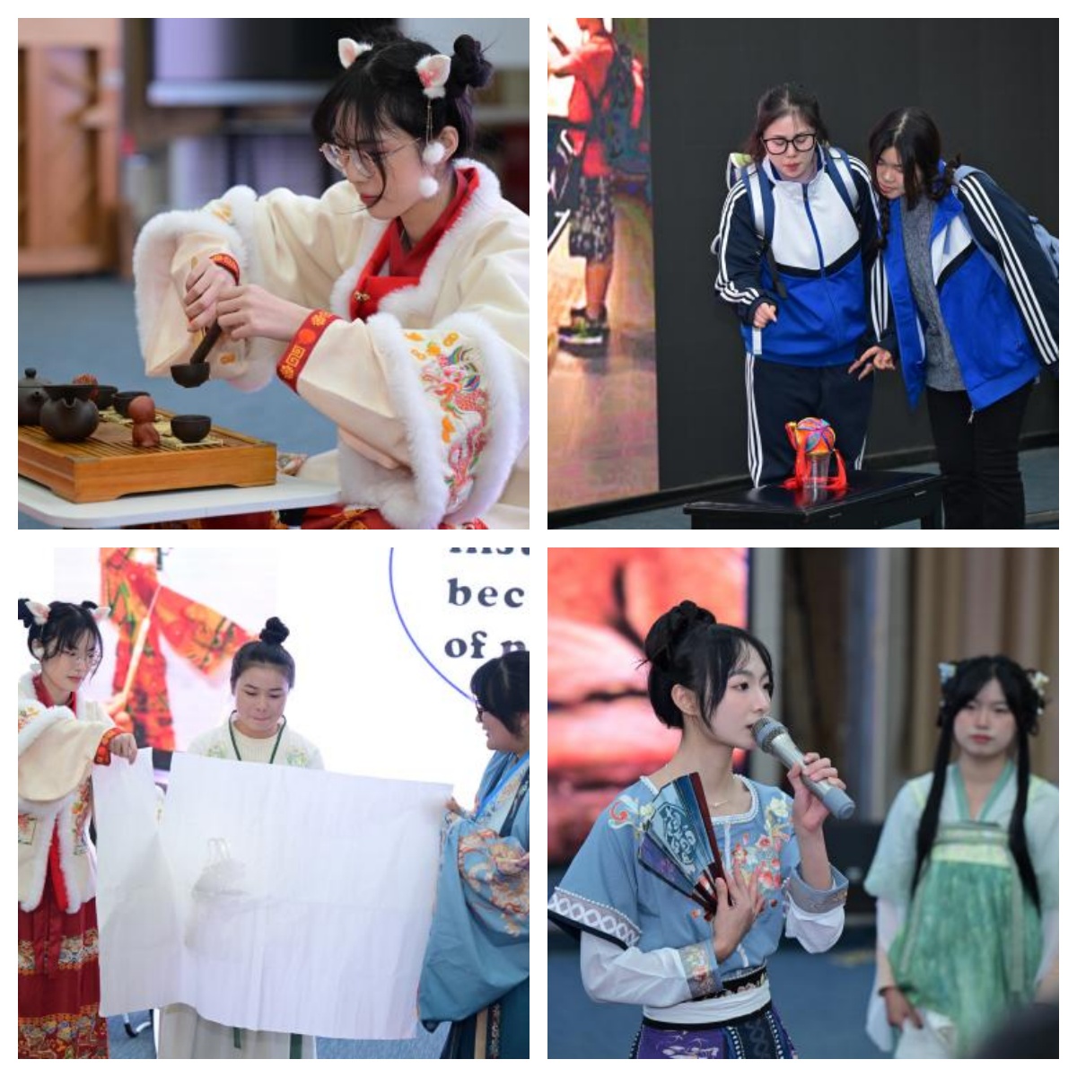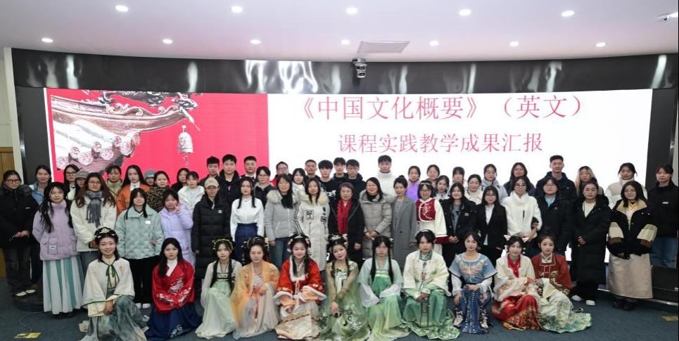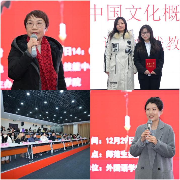 2023年12月29日下午14:00,外国语学院进行了《中国文化概要》(英文)课程实践教学成果汇报展示,活动由承担本门课程的主讲教师张莉娟副教授和高倩老师策划、组织,活动在荣耀(中国)师范生技能中心举行。外国语学院张慧军院长、高海燕书记、李娟副教授、课程团队成员以及2021级学生参加了此次汇报展示活动。