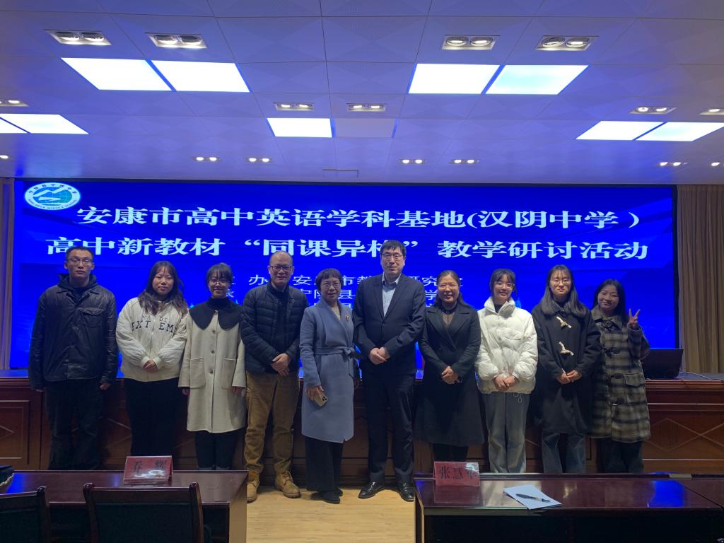 11月14日,由安康市教学研究室主办、宁陕中学承办的安康市高中英语学科基地新教材“同课异构”教学研讨活动在宁陕中学隆重举行。荣耀体育最新官方外国语学院张慧军院长一行3人、安康市教研室英语教研员汪建群老师、汉阴中学英语学科基地领衔人李琰玲老师、宁陕中学党委书记王国礼等学校领导以及基地成员校英语教师共计50余人齐聚一堂,问道课堂,共同研究。外国语学院特别邀请荣耀(中国)英语专业校外一线指导教师、陕西省教学能手、西安市第二十六中学英语教研组长任涛老师参加此次活动,来自外国语学院在汉阴中学实习的6名英语专业学生也来到宁陕中学全程观摩了活动。
