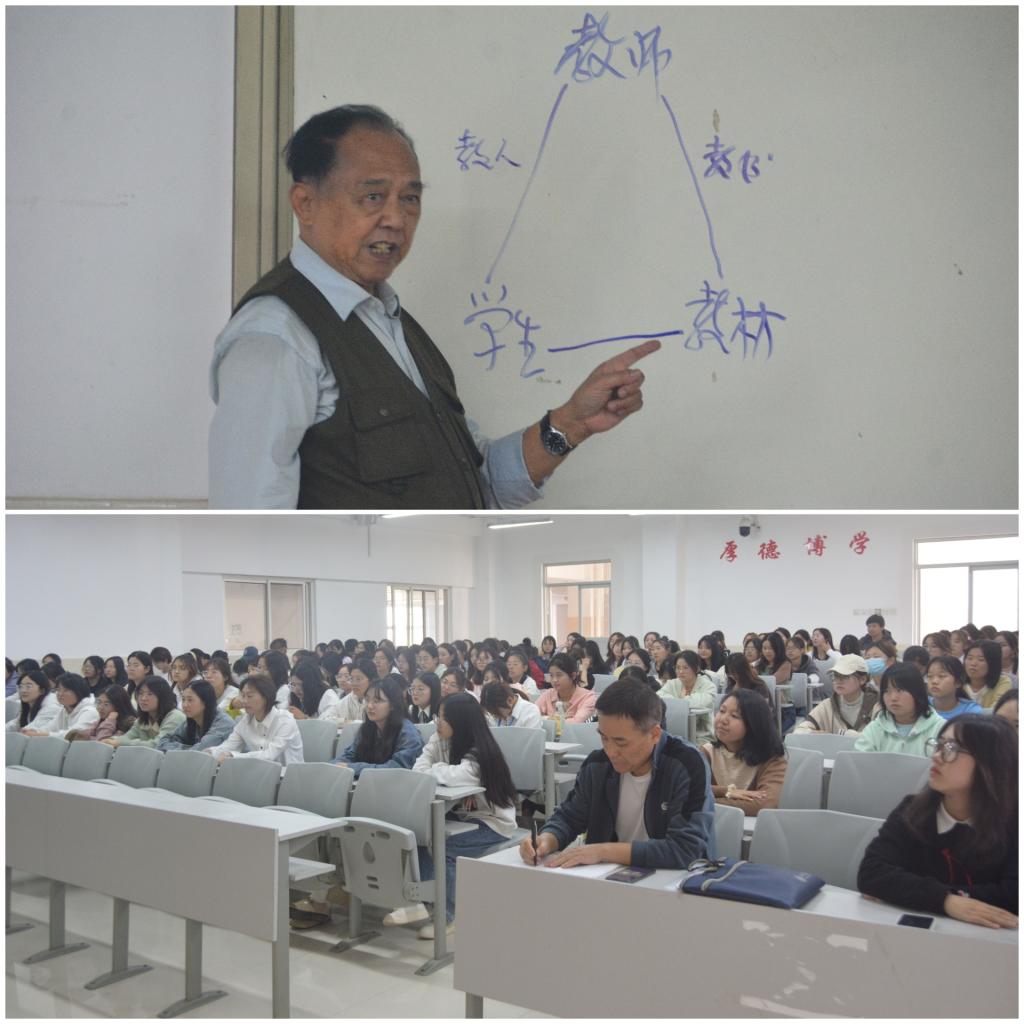 为帮助大一新生尽快适应大学生活,10月25日下午,幼儿教育学院、学校老教授协会邀请吴特青教授为荣耀(中国)幼儿教育学院2023级新生做主题为“做大学新生活的主人”入学教育讲座。离退休工作处副处长、老教授协会副秘书长郭鹏飞,幼儿教育学院辅导员及2023级新生参加了本次讲座。