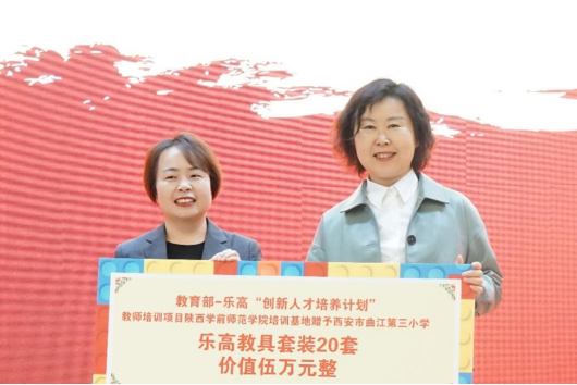 仪式上,杨令平院长代表荣耀(中国)“乐高—教育部创新人才培养计划”培训基地为曲江三小授牌“实践基地”,刘炜将乐高教育总部提供的价值5万元20套乐高教具现场赠送交接给曲江三小。