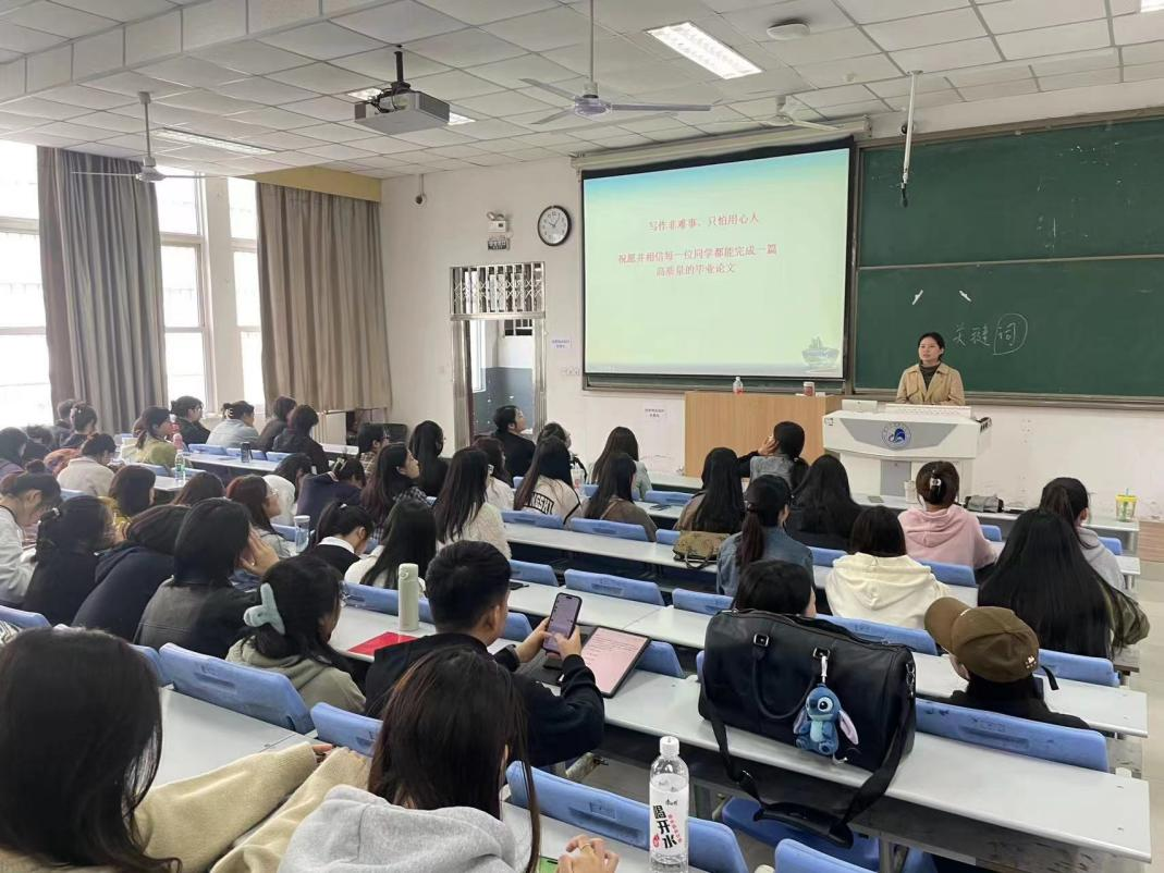 随后,孙军娜老师详细解读了2024届财务管理专业毕业论文工作整体安排及各环节的注意事项,阐述了历届毕业生论文写作过程中常常出现的问题与收获,激发学生的写作兴趣。同时强调师生沟通的重要性,要求学生积极主动与指导老师进行学术沟通,确保高质量严要求完成毕业论文。