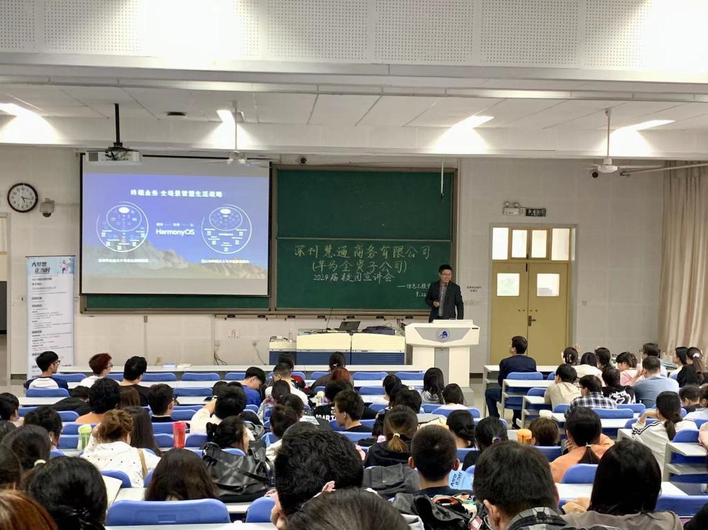 宣讲会上,华为慧通公司宣讲人向同学们播放了企业宣传片并从公司的发展历程、产业结构、业务范围以及未来发展方向等方面做了详细的介绍,随后向同学们说明了自身企业的招聘需求和福利。最后,同学们针对自己感兴趣的问题与企业负责人进行交流沟通,主动了解用人单位的基本情况并表达自己的求职意向,企业对毕业生的就业疑惑进行了详细的解答,同时期待同学们的加入。