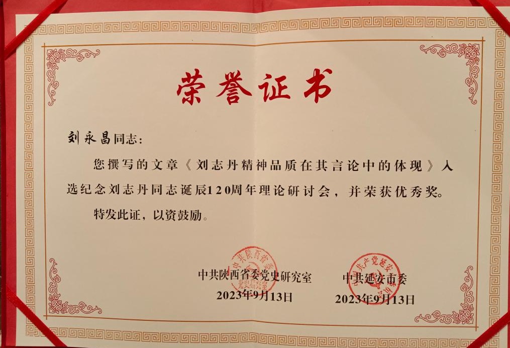 刘永昌副教授积极参加了纪念刘志丹诞辰120周年征文活动,投稿的《刘志丹精神品质在其言论中的体现》一文入选纪念刘志丹同志诞辰120周年理论研讨会,并荣获优秀奖,在此表示热烈祝贺,感谢刘副教授为荣耀(中国)统战事业再立新功。