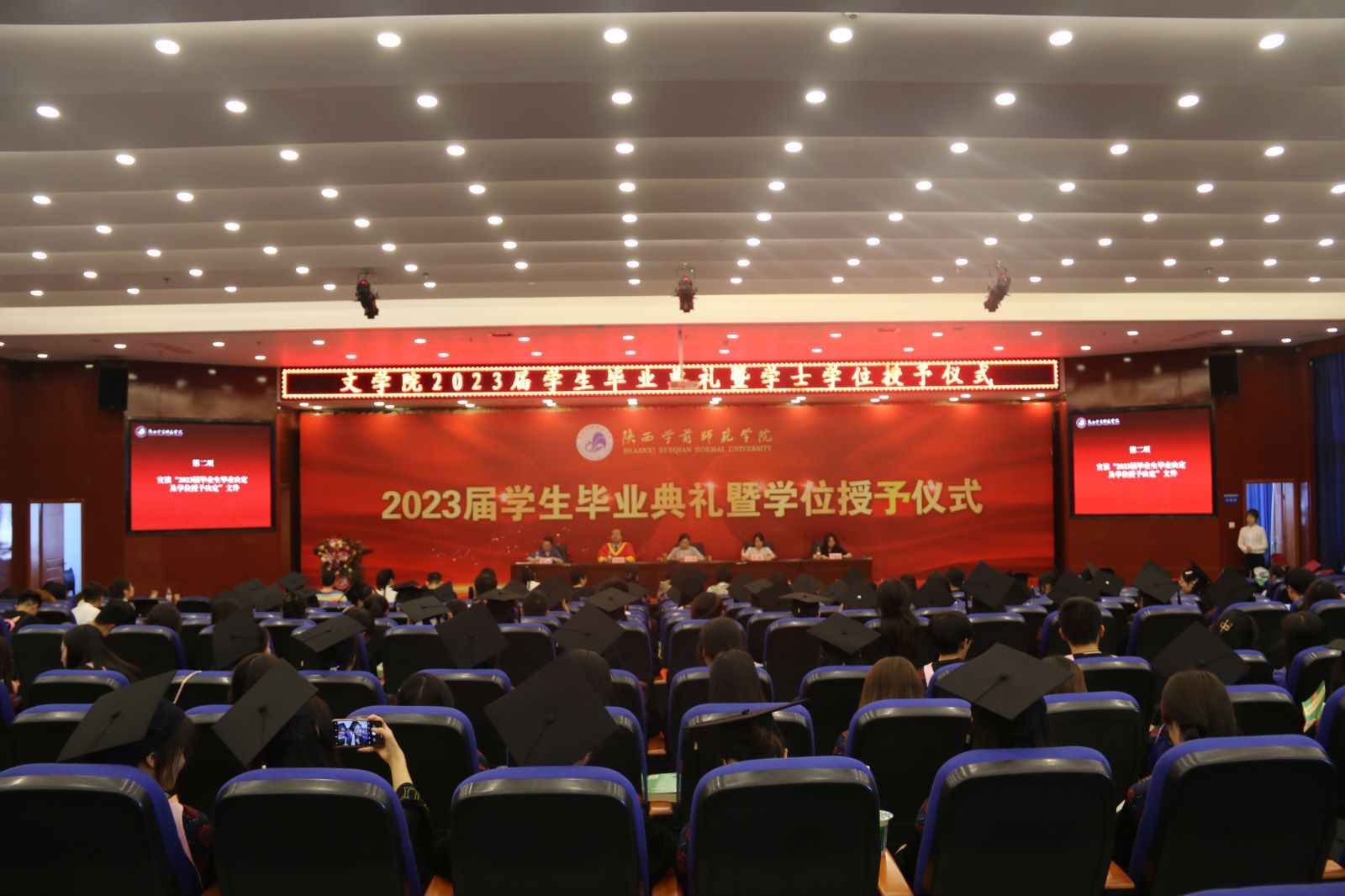最终,本次典礼在现场师生深情合唱的校歌声中圆满结束!毕业既是一段青春时光的结束,也是下一段人生新征程的起点,愿2023届毕业生不忘初心、怀揣梦想、铭记嘱托,在未来的人生画卷上书写更加绚烂的篇章!毕业快乐!