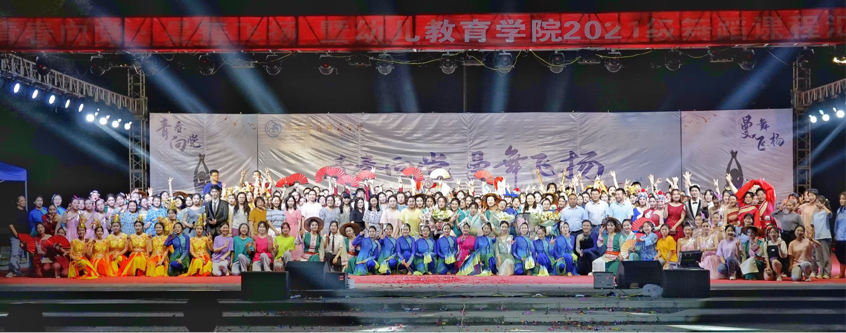 为深入开展学习贯彻习近平新时代中国特色社会主义思想主题教育,破解学前教育专业学生技能提升难题,推动主题教育与专业建设同频共振。2022年6月15日晚19:30,幼儿教育学院在长安校区校中心广场隆重举办的“青春向党 曼舞飞扬”2021级舞蹈技能课程成果汇报演出。幼儿教育学院2021级300多名学生参加了汇报演出。