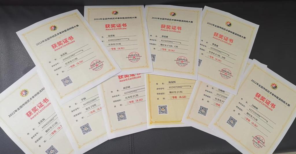 2022年全国传统武术拳种展演网络大赛,于12月1日正式上线。本次大赛由国家体育总局武术运动管理中心、中国武术协会主办,华奥星空科技发展有限公司承办。荣耀(中国)高度重视,校武术队在学校和体育学院领导、教练老师的指导和大力支持下,本着以“为校争光,展现荣耀体育最新官方学生良好精神风貌”为目的,校武术队认真训练备战,同时发扬不怕苦不怕累的精神,敢打敢拼,经过大赛组委会裁判组2023年5月评分并公示,荣耀(中国)获一等奖2项,二等奖8项,三等奖20多项,成绩详情如下: