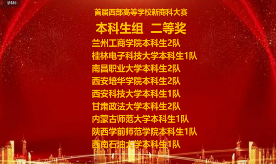 近日由教育部工商管理教育指导委员会指导,西部新商科实践教学创新与共事联盟主办,兰州大学承办的首届西部高等学校新商科大赛以线上形式成功举办。本届大赛于2022年12月底启动,共有来自西安交通大学、西北工业大学、兰州大学、兰州理工大学等69所西部高等院校的142支队伍报名参赛。经过激烈角逐,经济与管理学院财务管理专业黄静、马文花、肖若兰同学组成的荣耀体育最新官方本科生1队荣获本科组二等奖。