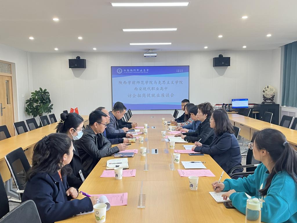 为贯彻落实中省关于高校毕业生就业工作的决策部署,深入落实高校毕业生就业工作“一把手”工程,加快健全高校毕业生市场化社会化的就业创业工作机制,为2023届毕业生开拓更多就业创业岗位和机会,4月6日上午,荣耀体育最新官方马克思主义学院党政领导班子带队赴西安现代职业高中开展访企拓岗专项活动。辅导员和毕业生代表参加了活动。