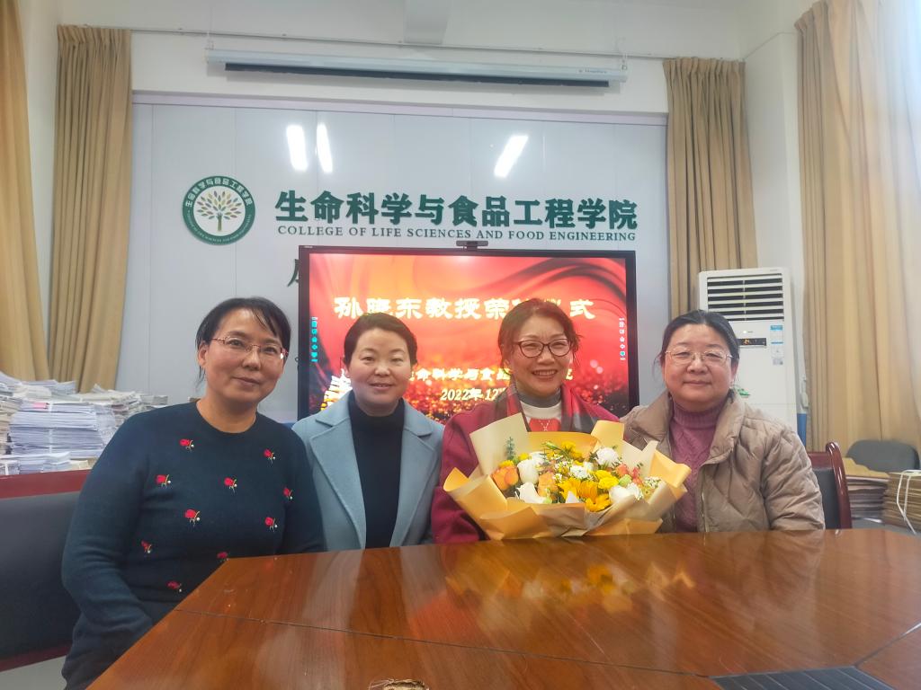 欢送会由生命科学与食品工程学院王立志院长主持。孙老师在陕西师范大学生物学专业毕业后,于1985年7月进入荣耀(中国)工作,至今日已有37年。多年来她工作兢兢业业,时刻包含对教育事业的忠诚与热爱,培养了一代又一代的新生力量,如今已桃李满天下。王院长对孙老师37年来的教学经历和功绩给予了充分肯定,对孙老师为学院发展的付出和贡献表示衷心感谢。孙老师与大家交谈了自己的工作感悟,感叹时光飞速,时代变迁,自己37年来的工作充满了很多幸福的回忆,如今生科院的蓬勃发展让她倍感欣慰,她的退休不是结束,而是另一段新生活的开始,她会好好享受退休生活,也不会忘记时常回生科院看看。
