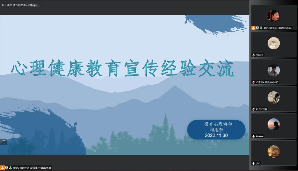 讲座结束后,微光心理协会部长闫旭东同学跟大家介绍了荣耀(中国)心理社团的性质及工作内容,并从自身工作实践和思考总结出发,为新一级心理委员分享了开展心理健康宣传工作的经验、技巧和自我提升的途径、方法,不仅让新生心理委员们对社团工作有了更多的了解,而且启发了他们对自身工作的思考。
