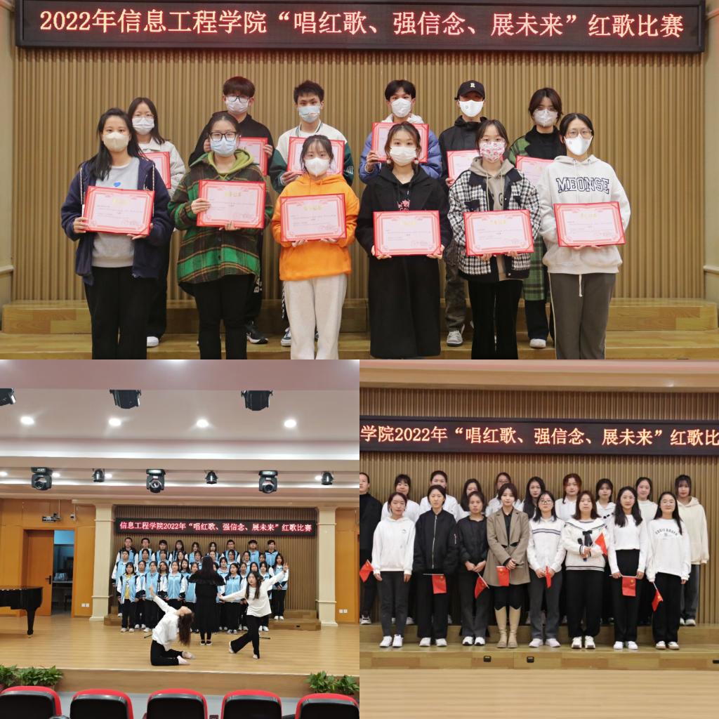 为贯彻落实党的二十大精神,弘扬时代旋律,重温红色经典,营造浓厚美育环境,信息工程学院于2022年10月25日——11月11日举办“唱红歌、强信念、展未来”红歌比赛。