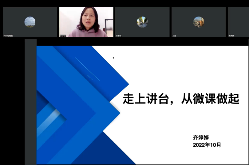 2022年10月21日晚,外国语学院成功举办了第十四期“英华名师讲堂”。本次讲座邀请了陕西省优秀教学能手、西安市高新一中高级教师齐婷婷老师为我院学生做了“走上讲台,从微课做起”的主题讲座。本次讲座以腾讯会议的方式线上进行,英语系主任刘少杰博士、负责“英华名师讲堂”工作的周雪薇老师、《英语课程与教学论》授课教师以及2021级、2020级英语专业学生参加了此次活动。外国语学院张慧军院长主持讲座。
