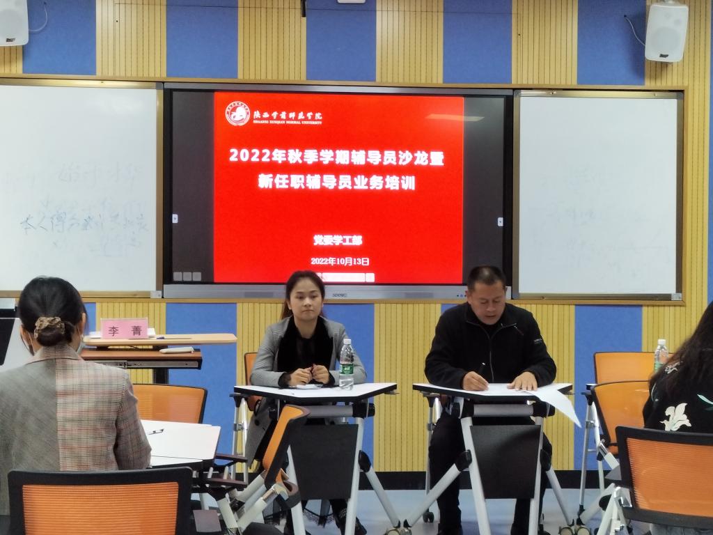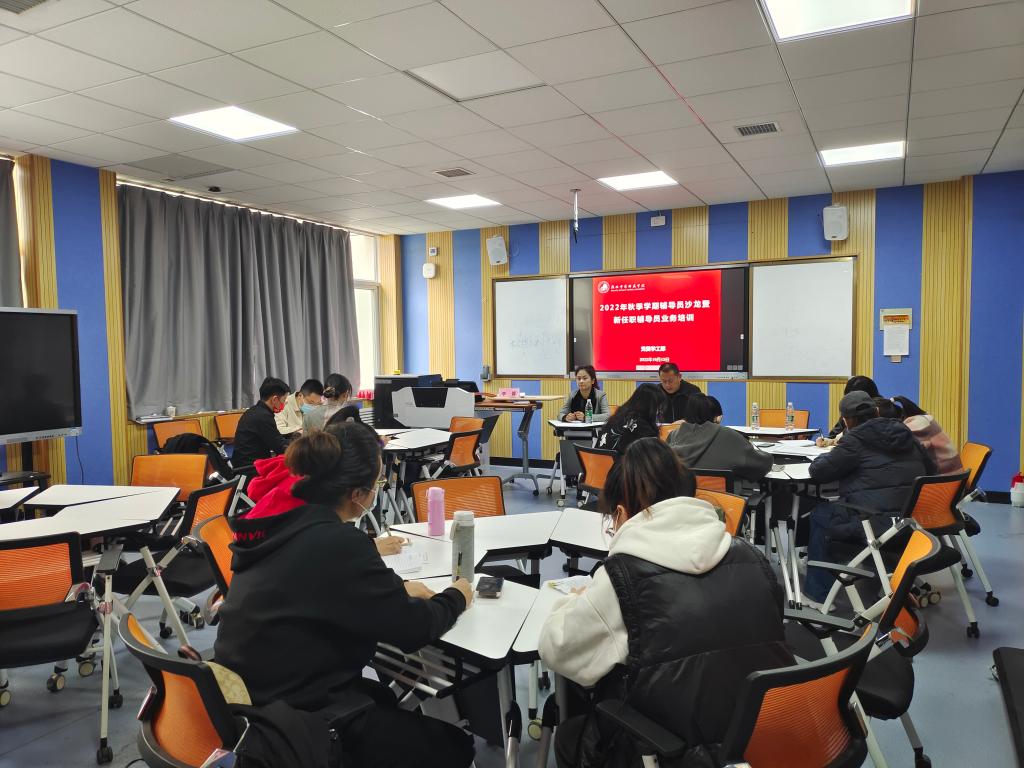为进一步加强辅导员队伍建设,提升新任职辅导员工作能力和业务水平,促进辅导员职业化、专业化发展,学工部于10月14日下午2:30,在博文楼C座203室组织开展了第十八期辅导员沙龙暨首场2022年新任职辅导员业务能力培训。本期是由大学生心理健康教育与指导中心主任李菁、经济与管理学院党委副书记陈璐主讲,2022年新任职的29名专兼职辅导员参加此次培训,本次培训由学工部副部长王成富主持。