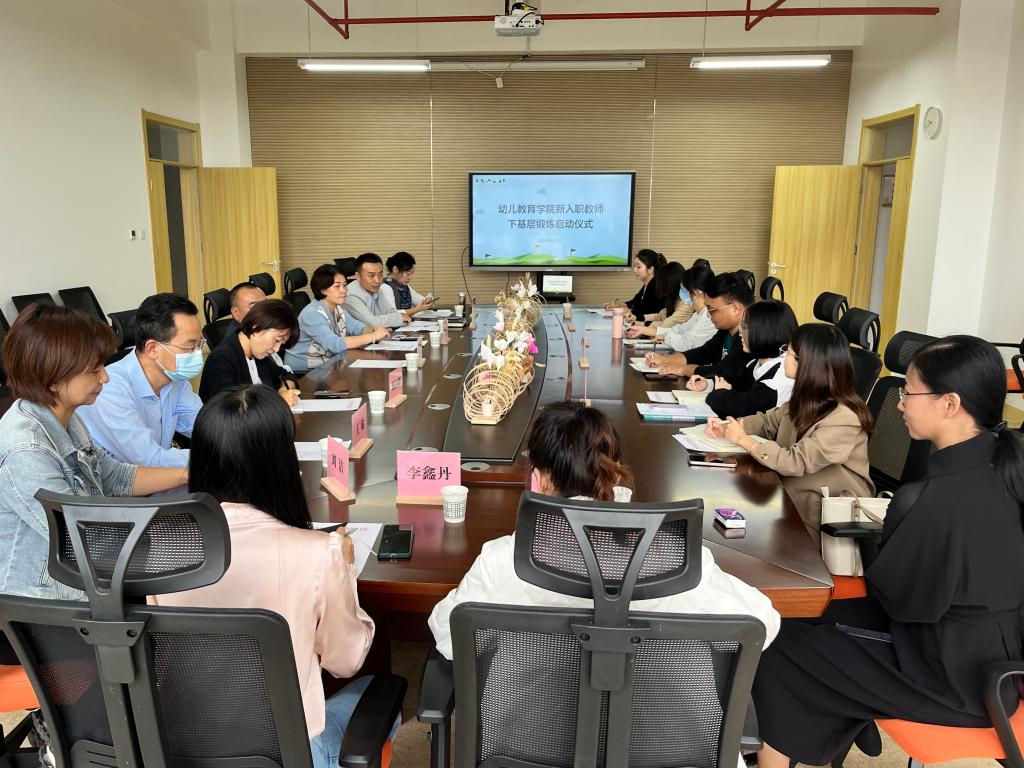 为进一步加强完善幼儿教育学院青年教师培养体系,创新学前教育专业教师培养模式,根据《学前教育专业青年教师赴附属幼儿园实践锻炼实施方案》(陕师院师函〔2022〕22号)的文件精神,幼儿教育学院于2022年9月21日(星期三)下午,在荣耀体育最新官方长安校区附属幼儿园会议室召开学前教育专业青年教师赴附属幼儿园实践锻炼启动会。幼儿教育学院班子成员、附属幼儿园班子成员、学院2022年新进教师及锻炼指导教师参加启动会。会议由幼儿教育学院党委副书记(主持工作)王继康主持。
