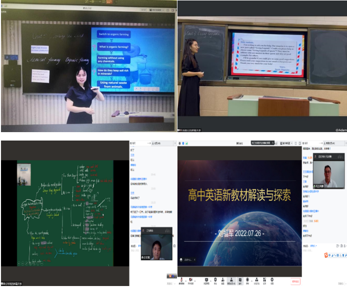 来自上海外国语大学的博士生导师梅德明教授以“新课程、新教材、新教法、新评价——指向核心素养发展的高中英语课程建设”为题进行报告,深入分析了新高考对高中英语教学提出的新要求,以及教师如何进行课程建设;山东鲁东大学硕士生导师苏勇教授围绕“新课标理念下高中英语阅读教学理论与实践应用”进行了详细的分类阐述并给出示例;杭州外国语学校特级教师夏谷鸣老师就“高考新题型读后续写”,以案例分析的方式进行了深入阐述与讲解;西安交通大学附属中学陈江丽老师为学员们介绍“核心素养在高中英语听说课、语法课的落地”,丰富了学员们的实践知识,增强了学员们运用可视化工具提升教学水平的能力;我院张琛睿老师从高中英语教师的需求出发,与老师们一起探讨了现代教育技术在英语教学中的应用方法和策略,为学员们指点迷津。专家们的报告高屋建瓴、内容丰富、理论联系实际,开阔了参训教师的视野。