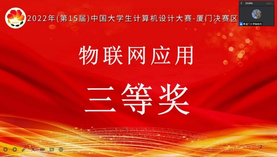近日,2022年(第15届)中国大学生计算机设计大赛落下帷幕。由信息工程学院物联网工程专业刘炜老师指导的张思尧、李鑫洁、欧阳威等学生团队作品《基于STM32的工程施工工地门禁系统》继获得陕西赛区“三等奖”后,荣获全国总决赛“三等奖”。