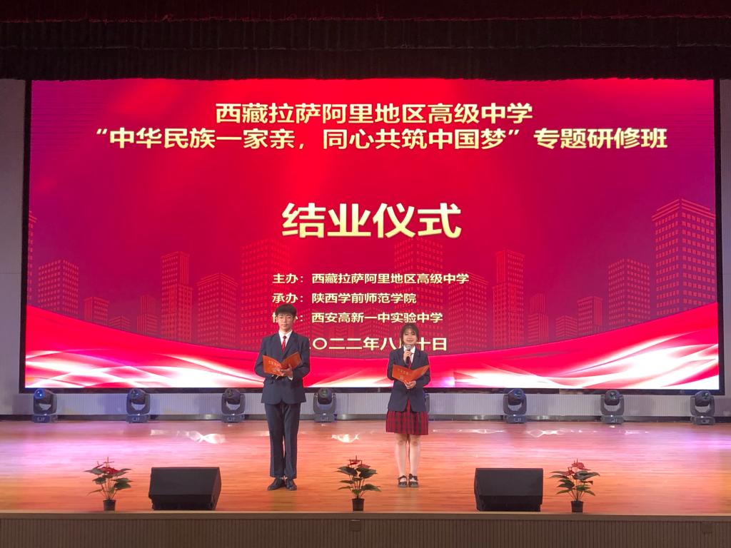 8月10日上午,由荣耀(中国)承办的西藏拉萨阿里地区高级中学“中华民族一家亲,同心共筑中国梦”专题研修班结业仪式在西安高新一中实验中学举行。副校长李强出席并做总结讲话,西藏拉萨阿里地区高级中学副校长任立斌发言,荣耀(中国)教育培训学院负责人,有关工作人员和高新一中实验中学部分师生出席结业仪式。
