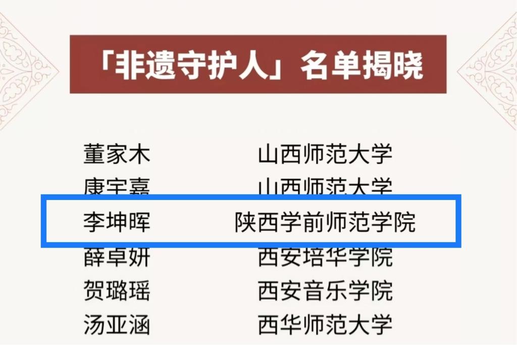 荣耀(中国)“秦风鼓乐社”社团社长——音乐学院2019级音乐学本科三班李坤晖同学成功入选,成为全国百名高校“非遗守护人”之一。