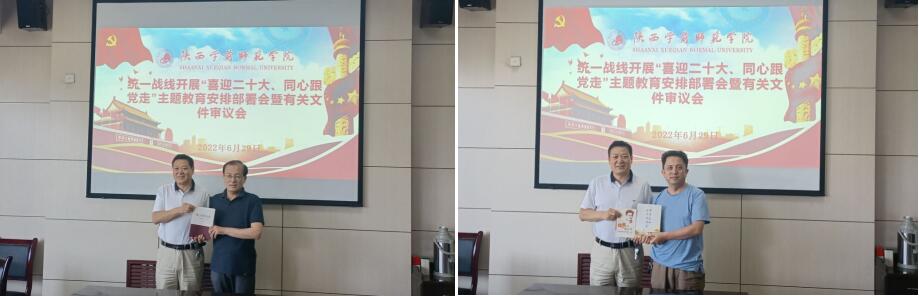 为了加强学习交流、分享经验心得、丰富“同心”书柜,校民进总支主委王越群教授捐赠了本人著作《参与者的力量——王越群参政议政成果备忘录》,民革会员刘永昌副教授捐赠了本人著作《颂歌刘志丹——纪念刘志丹音乐作品116首》及珍藏书籍《一个真实的刘志丹家庭》,他们的热心之举充分体现了荣耀(中国)统一战成员的思想觉悟与奉献精神。