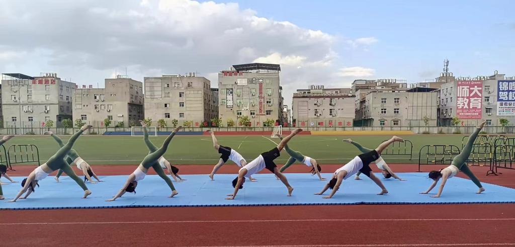 6月27日下午17:00,体育学院在长安校区田径场开展了首届校园健身瑜伽课程教学成果展演活动。体育学院全体班子成员和教师代表亲临现场观看、指导。承担大学体育健身瑜伽课程教学的黄珂、陈虹洁两位老师进行现场的组织与管理。