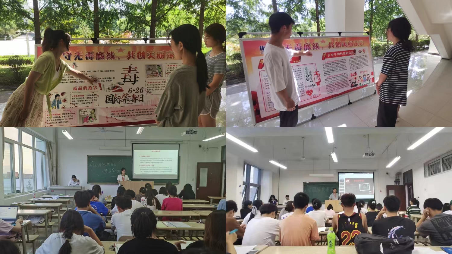 在此次宣传活动中,志愿者团队深入不同学院班级开展禁毒知识主题宣讲,通过讲解“什么是毒品?”、“毒品的分类”、“毒品的危害”等重点问题,与同学们深入探讨青年学生在日常生活中应该如何远离毒品。团队成员还通过对前期资料的整理与收集,精心制作了“6.26”国际禁毒日主题宣传展板,并利于课余时间积极开展相关案例讲解,帮助广大同学进一步了解新型毒品所带来的严重危害。