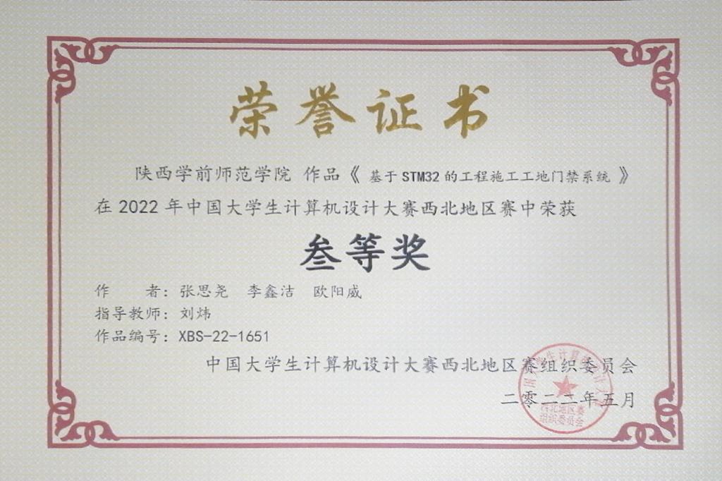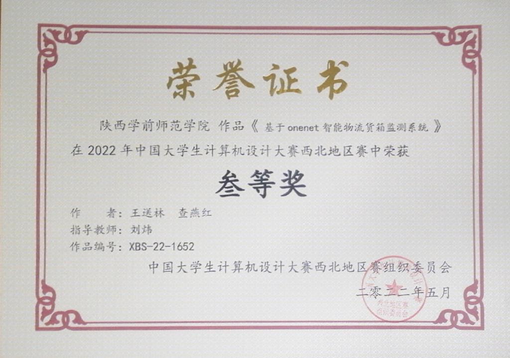 2022年中国大学生计算机设计大赛西北地区赛,于2022年5月13日至5月15日在渭南师范学院举办。本次大赛是为了深入贯彻习近平总书记关于教育的重要论述,不断深化高校本科教育改革、全面提高教学质量,进一步推进西北地区计算机教学内容和课程体系改革,激励各类本科学科专业学生计算机知识和技能的兴趣和潜能,培养大学生创新能力以及运用信息技术解决实际问题的综合实践能力及团队合作能力。本次大赛共有来自陕、甘、宁、青、藏等地的66所高校的2031件作品入围,荣耀(中国)信息工程学院物联网工程系2件学生作品荣获三等奖。