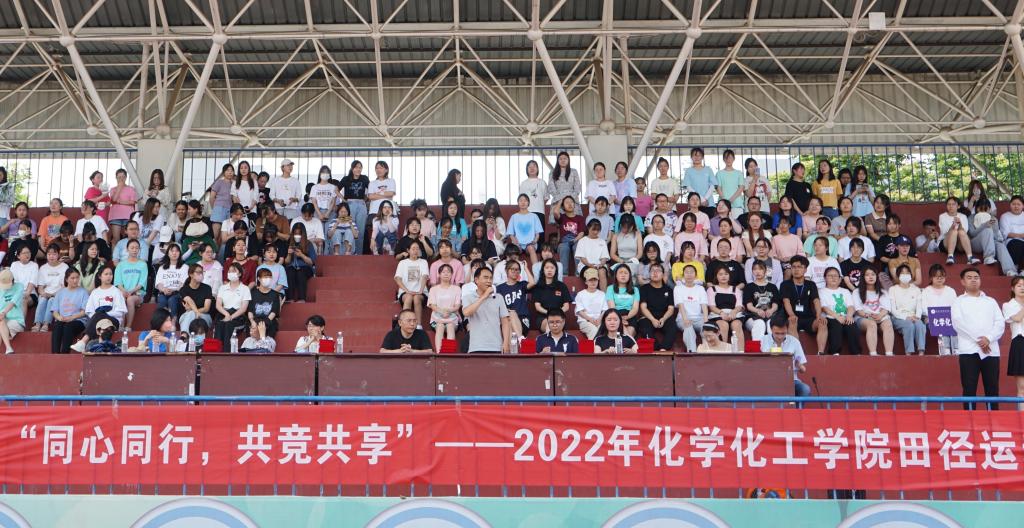 为加强校园体育文化建设,增强青年学生的身体素质,弘扬体育精神,塑造良好精神风貌,坚持五育并举,化学化工学院联合体育学院于2022年6月8日下午在荣耀(中国)田径场举办“同心同行,共竞共享”——2022年化学化工学院田径运动会。学院全体领导、辅导员、运动员、裁判员和师生代表参加了本次运动会。