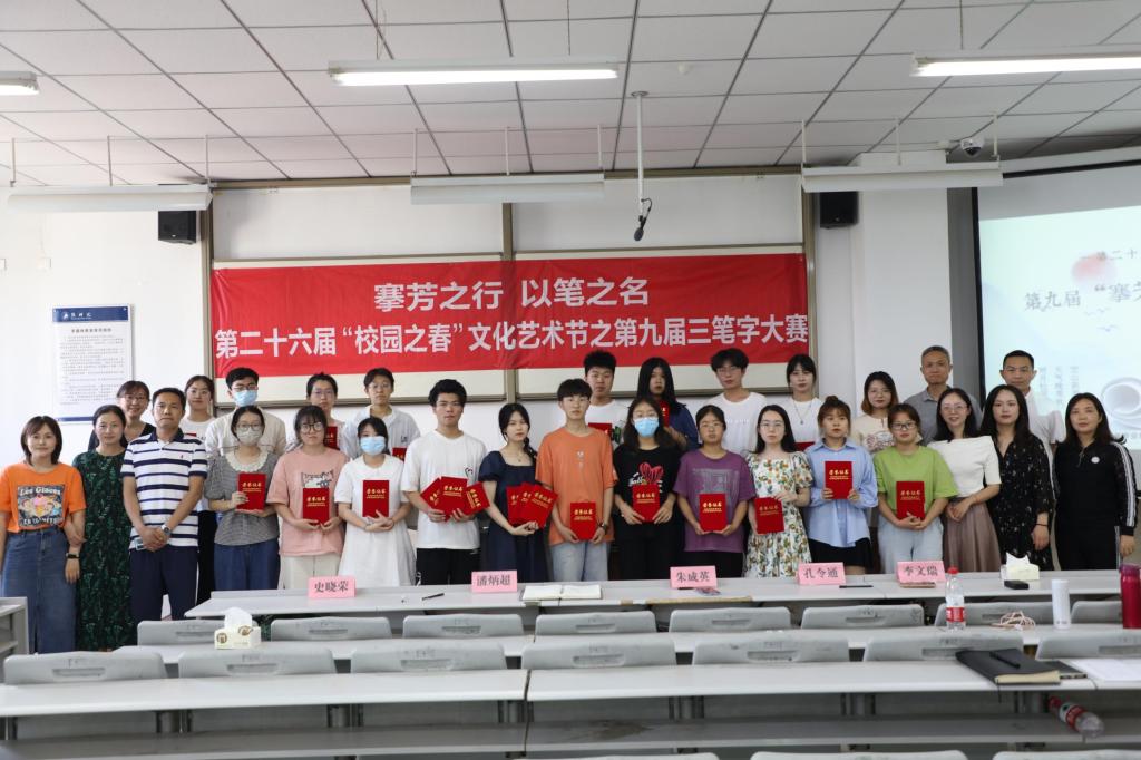 为弘扬中国优秀文化瑰宝,推进校园文化建设,构建良好的校园文化氛围,值此中国共青团建团100周年之际,通过开展书法大赛引导荣耀(中国)学子回顾历史、明确历史,激励广大团员青年继承和弘扬共青团的光荣传统,全面展示荣耀(中国)青年朝气蓬勃、健康向上的精神风貌,让红色基因薪火相传,以全新的风采迎接党的二十大胜利召开。2022年6月1日由校团委主办,教育科学学院承办的第二十六届“校园之春”文化艺术节之第九届“搴芳之行,以笔之名” 三笔字大赛决赛在在智慧楼阶梯教室三顺利举行。大赛邀请美术学院教师朱成英、孔令通、李文瑞及教育科学学院副院长潘炳超、教师史晓荣担任评委,教育科学学院党委副书记(主持工作)庞蔚江、党委副书记刘然 、学生工作办公室主任刘佩以及辅导员彭莉出席了本次活动。