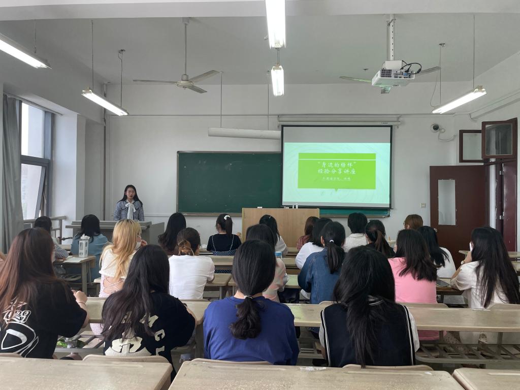 为推进学院学风建设工作,树立学生榜样示范引领作用,着力营造敦厚奋进、崇教尚学的良好风气,外国语学院分别于2022年4月25日、28日下午四点,在博文楼B501教室开展“身边的榜样”宣讲活动。外国语学院辅导员、2021级全体学生参加了宣讲会。