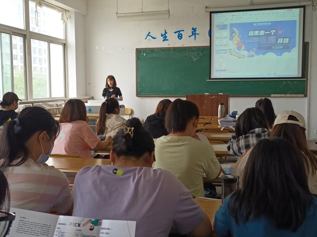 在就业冲刺阶段,为保证学院未就业学生找到合适的单位和满意的工作,2022年5月18日上午,幼儿教育学院在启真楼407教室再次召开2022届毕业生就业就业宣讲会。本次邀请西安庆安长庆幼儿园、庆安民航幼儿园和海亮学前教育集团前来招聘。幼儿教育学院党委副书记苏群、辅导员段海燕和李通老师接待招聘单位并组织宣讲会,幼儿教育学院2022届级未就业学生及荣耀(中国)其他院系学前教育专业学生参加了招聘会。